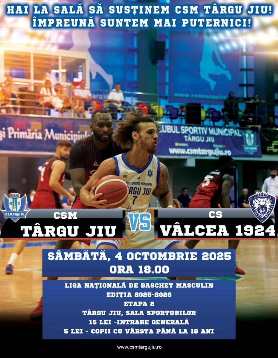 Baschetbaliștii CSM Târgu Jiu primesc vizita echipei din Vâlcea, care vine la Târgu Jiu din postura de medaliată cu bronz în ediția trecută de campionat.