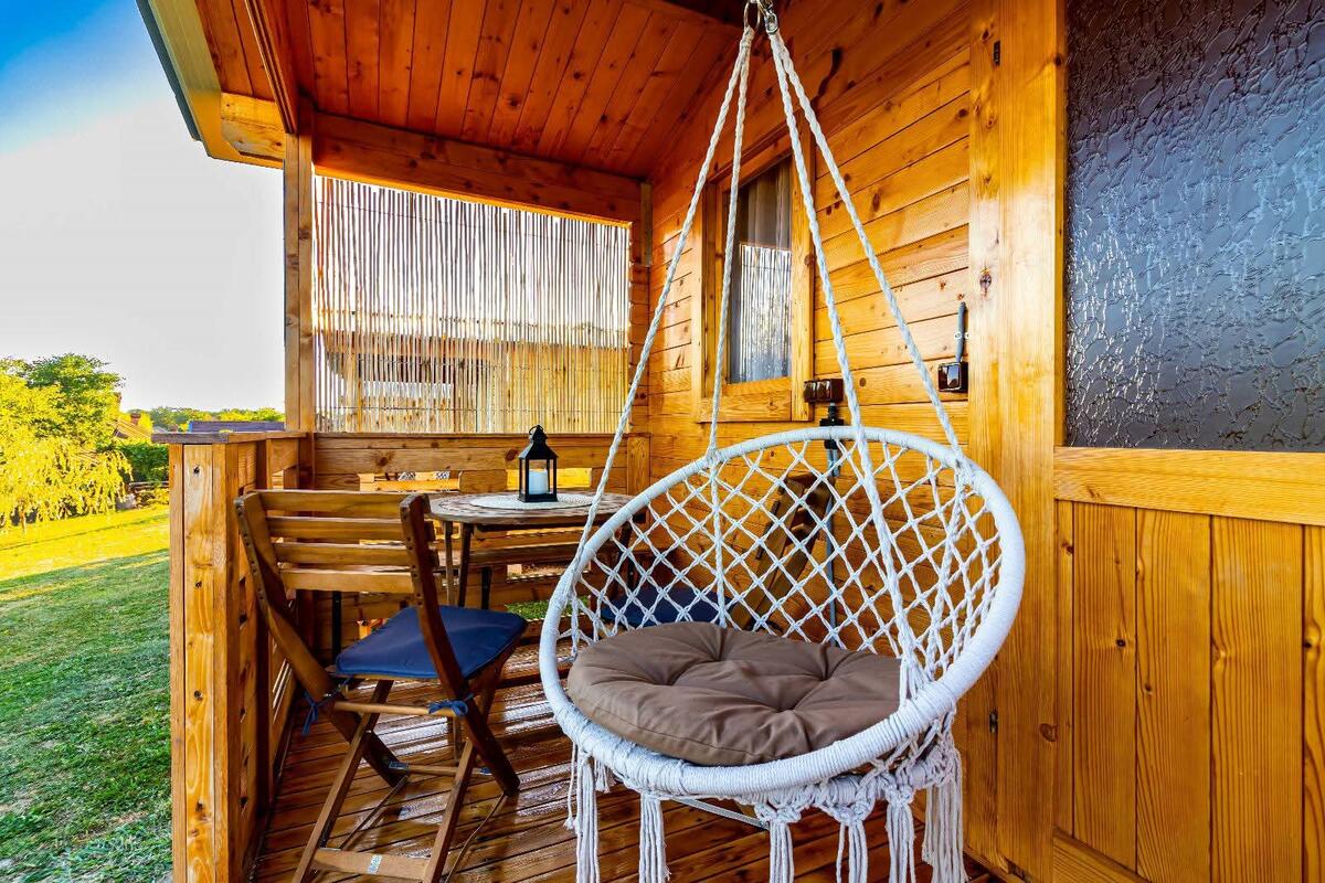 Fiecare căsuță are terasă proprie, cu loc pentru servit masa și un leagăn suspendat – un colț perfect pentru a citi o carte, a savura o cafea sau a vă bucura de liniștea serilor. În interior, vă așteaptă un pat dublu confortabil, o canapea pentru o persoană și un inverter pentru serile răcoroase – totul gândit pentru a vă oferi o ședere cât mai plăcută.